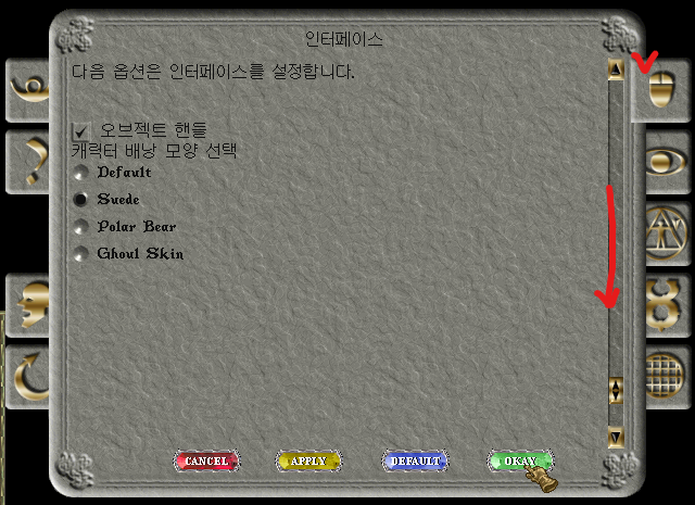 캐릭터창 옵션에서 아래와 같이 옵션을 체크 후 적용합니다.